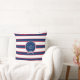 Marinho Azul Monograma Náutico Branco Monograma Travesseiro de faixas modernas