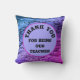 Este travesseiro decorativo de apreciação da professora apresenta um padrão de fundo abstrato em azul neon e cor-de-rosa na frente e no verso. As faixas horizontais de cor vibrante são decoradas com pretos e linhas pretas aleatórias que dão a este travesseiro uma vívida aparência de abstrato. Um círculo sólido no centro em azul claro fornece o fundo para "Obrigado por ser nosso professor" que pode ser facilmente personalizado se você desejar. Design original - C. McGouldrick