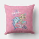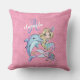 A sereia rosa e ouro personalizados escalam o travesseiro decorativo para o quarto de uma garota. Monograma com seu nome e inicial. Ele apresenta uma bela sereia loira, um golfinho, e uma tartaruga com estrelas e outras criaturas marinhas.