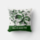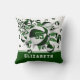 O travesseiro decorativo de basquete desta menina legal apresenta uma "explosão" de bolas de basquete verdes e brancas em tamanhos variados e cinzas e formas de estrelas verdes, na qual você pode personalizar seu número de camisa - a estrela verde tem um pequeno padrão de bolinhas brancas - personalize o nome do atleta em uma faixa verde na borda inferior do travesseiro - katz_d_zynes
