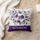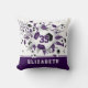 O travesseiro decorativo de futebol desta menina legal apresenta uma "explosão" de bolas de futebol roxas, pretas e brancas em tamanhos variados e cinzas e formas de estrelas roxas, sobre as quais você pode personalizar seu número de camisa - a estrela roxa tem um pequeno padrão de bolinhas brancas - personalize o nome do atleta em uma faixa cor roxa na borda inferior do travesseiro - katz_d_zynes
