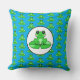 Sapo verde e azul em um travesseiro de almofada de lírio.