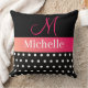 Almofada Script de Monograma Rosa Branco Preto do Bolinhas