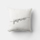 Travesseiro Personalizado Minimalista Simples Limpo Preto e Branco com Nome em Monograma e Letra Cursiva. Este design apresenta seu primeiro nome em um lindo estilo de letra manuscrita com fonte de assinatura swash tail em tipografia (ou caligrafia) preta em fundo branco. São fáceis de personalizar. Ótimo presente feminino e elegante para aquecimento de casa, também para aniversário, dia das mães, casamento, festa de 16 anos, chá de noiva, chá de bebê, para formatura e é para a garota que ama coisas únicas e elegantes.