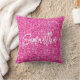 Almofada Script de Pincel Branco com Brilho Rosa Quente