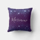 Uma cor de fundo roxa profunda com poeira brilhante azul. Personalize e adicione um nome. O nome é escrito em branco com um grande script de estilo escrito à mão.