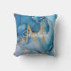 Travesseiro decorativo de geodos azul de monograma em ouro-chic. Você pode personalizar o nome, monograma e personalizar a fonte e as cores para criar seu próprio design único. Projetado por Thisnotme©