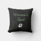 Travesseiro decorativo de Script Verde Botânico Floral Preto do Nome Pet Personalizado. Reserva-se para o teu melhor amigo!