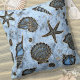 Conchas marinhas Douradas e estrelas-do-mar em tons de azul-céu a marinho-escuro cria este lindo padrão de travesseiro decorativo da vida marinha que seria perfeito para a sala do capitão ou a decoração da casa de praia na moda. O fundo azul de aquarela e o padrão de borda dourada podem ser ocultos ou excluídos para adicionar qualquer cor sólida de sua escolha. Procure ID782 para ver a gama completa de cores e produtos adicionais com este design.