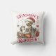 A festive and cheerful Christmas holiday design showcases a skeleton wearing a Santa hat, reading a book, and holding a steaming cup of coffee. Surrounding him are poinsettias, holly berries, and pine tree branches. The colorful text says: "Season's Readings." This design is available on a variety of products, making it the perfect gift for book lovers.