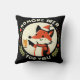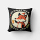Um design de almofada de Natal humorístico com uma raposa fofa vestindo um chapéu e cachecol de Papai Noel, apontando com uma expressão séria. Rodeado por elementos festivos como azevinho, frutas vermelhas e ornamentos, o texto "Sem mais cerveja para você" adiciona um toque divertido. Perfeito para decoração de Natal com um toque de humor e charme.