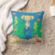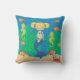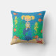 Isto bonito sob a característica do travesseiro decorativo do quadrado do mar como a sereia com cabelo louro nas tranças que nada no oceano com seus amigos da criatura do mar. Alguns gráficos por AMBillustrations.