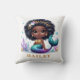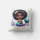 © 2023 Socialite Designs & LICENCORS. Este travesseiro mágico personalizável de uma criança de sereia apresenta uma design de sereia afro-americana e uma área de nomes personalizados. Crie um travesseiro único e personalizado para o seu filho que celebra sua individualidade e amor por todas as coisas sereias.