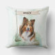 Add cozy charm to your home with this Shetland Sheepdog throw pillow featuring a watercolor design and customizable name flag. Ideal for breed lovers.