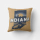 Na moda travesseiro decorativo apresenta uma silhueta de estado cênico retrô de Indiana sobre fundo marrom-claro.