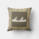 Travesseiros decorativos temáticos russos e aventuras com símbolo de canoa, como aqueles que veem ao longo da estrada ou na estrada. Silhueta branca de duas pessoas a fazer canoagem a castanho, com fundo de madeira envelhecido