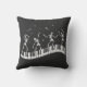 Entre no espírito do Dia das Bruxas com este travesseiro decorativo preto assustador com três esqueletos dançando em um teclado, cercado por estrelas e notas musicais. É o presente perfeito para um professor de música ou amante de piano.