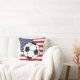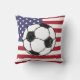 Bandeira dos Estados Unidos (EUA), estrelas e listras. No centro há uma bola de futebol com estilo esboço/esboço, com fundo branco.