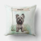 Add cozy charm to your home with this Skye Terrier throw pillow featuring a watercolor design and customizable name flag. Ideal for breed lovers.