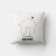 Cushion featuring the drawing of a house with a heart above its chimney and "Smith's HOME" underneath the house. All the properties of the design components (e.g., its fill and border color, size and orientation) can be customized. To simply change "Smith's" and HOME, choose "Personalise this design" and make your changes. To make more changes, follow the steps below: