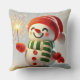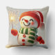 Um boneco de neve festivo adorava com um chapéu vermelho e cachecol durante um inverno de neve.