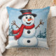 Feliz boneco de neve adornado com um cachecol vermelho, mostrando um sorriso alegre enquanto se coloca em meio a neve recém-caída. Perfeito para cenas festivas de férias ou designs de inverno
