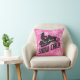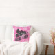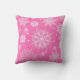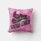 Um travesseiro decorativo de silhueta móvel de neve sobre um fundo bonito de floco de neve rosa. Presente perfeito para o pintinho de neve feminino! Personalize com o nome de sua escolha.