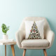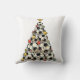 A festive Christmas tree made entirely of stacked soccer balls, decorated with ornaments, bells, gift boxes, and colorful string lights, topped with a bright star.