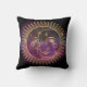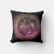 Travesseiro decorativo quadrado com sol dourado e cobertura lua sobre fundo violento celeste violento