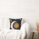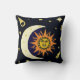 Esse travesseiro decorativo colorido mostra o sol e a lua, estrelas amarelas, cometas, asteroides e galáxias, sobre fundo azul-da-noite. Um adorável acessório incomum para o quarto ou sala.