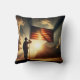 Uma silhueta de um soldado saudando uma bandeira americana com raios solares dramáticos.