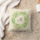 Uma coroa floral clara e arejada, com monograma personalizado na frente do travesseiro, e cor sólida no verso. Personalize com o seu monograma substituindo a amostra mostrada no modelo de design.