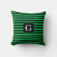 Este travesseiro bonito apresenta faixas em tons de verde juntamente com uma inicial personalizável.