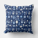 Essas flores azuis e brancas em vasos botânicos são perfeitas para um travesseiro decorativo. Mudar seus travesseiros decorativos é uma maneira rápida e fácil de refrescar sua decoração sazonal. Imagem assistida por IA adquirida com uso comercial. Trabalho de arte: DreamCafeArt