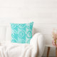 Um padrão geométrico sem costura com fragmentos circulares em tons de turquesa decora o travesseiro decorativo. A beleza do padrão repetido é que ele permite colori-lo do seu jeito personalizando a coloração de fundo. Entre em contato conosco se precisar de ajuda para isso. info@kbmd3signs. Para obter ideias de estilo, visite nosso site www.KBMD3signs.com