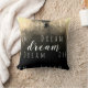 Na frente do travesseiro, "Sonho" aparece em um roteiro ousado, sobreposto a filas de repetidas letras simples, ambas em branco, e aponta a importância de sonhar em seus muitos significados. Esta mensagem encorajadora e inspiradora aparece em uma "sépia" de design natural tonificada em esticado, marrom escuro e bege. No verso do travesseiro, a palavra "Sonho" é repetida em arranjo diagonal.
