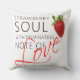 Morango vermelho com folhas verdes e um texto Alma de morango com nota dominante de amor. Um tipo de t-shirts, impressões e presentes para todos. Tema de amor e romance. Travesseiro decorativo para qualquer um. Bom também como Rua, presente de Dia de os namorados.