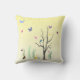 Este travesseiro decorativo adorável cria um humor primavera brilhante e colorido. Os pássaros estão voando e estão empoleirados na árvore. Borboletas pairam no ar quente. Um pato pula na grama. Um coelho marrom olha. Há até um pequeno caracol no chão. A cena é colocada sobre um fundo de gradiente amarelo pálido. A imagem é repetida no verso.