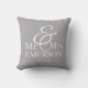 Adicione sobrenome e "Estabelecido" ou data de casamento à frente desta cinza e travesseiro decorativo "Sr. & Sra." branco.