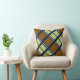 Stripes and squares preppy throw pillow. A perfect addition to a contemporary or preppy living room with a navy background and brown and olive stripes and squares.