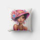 Almofada Stylish Floral Hat Woman Vibrant Portrait Art