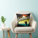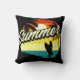 O design de estilo retrô apresenta texto "vibrações de verão" com o pôr do sol tropical e gráficos de surfista fêmea