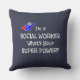 Sou um Trabalhador Social. Qual é o seu Super Poder? Letra branca em fundo azul escuro de marinho.