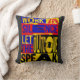The design is a masterclass in abstract typography, utilizing a bold palette of vibrant red, royal blue, and bright yellow. Each word is rendered in a unique, distorted, or blocky font style that creates a sense of raw energy and constant motion.