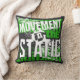 The design features a layered, high-energy composition. The word "MOVEMENT" is rendered in a distressed white font with energetic circular scribbles layered over it. This sits atop a mirrored, vibrant lime green block font. The central phrase "in the" is placed in a jagged, black-and-white splatter badge, while the word "STATIC" anchors the bottom in massive, weathered white block letters.