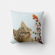 Almofada Tabby Gato e Pássaro Pequeno em Azul Claro