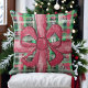 Um travesseiro bonito e alegre da decoração da casa em uma aparência festiva de tartan, parecendo-se com um belo presente de Natal.arco pintado vermelho Bonito como acessório para a xadrez de fundo nas cores tradicionais de inverno: verde, branco vermelho.Um toque de brilho com sequências espumantes.Cozy, comfy adição atraente à casa ou mesmo ao escritório, prefeito para a temporada de presentes e além.