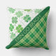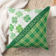 Este travesseiro decorativo apresenta uma design de xadrez verde emparelhada com um padrão de shamrock e um texto personalizável para personalizá-lo.
