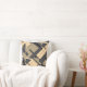 Um design de arte contemporânea de ousadas, inclinadas diagonalmente, grandes formas geométricas em tons de bege, taupe e cinzas de carvão com elementos negros é apresentado sobre um fundo negro, inspirado no estilo Moderno do século Médio. A planta evoca uma sensação de movimento fluido e atividade. O design geral é colorido e ousado, com uma qualidade de arte tribal politizada, projetando uma vibração sofisticada mas exótica para a área viva, o quarto, o espaço de trabalho, o terraço ou o decor do pátio. Há também uma sensação de guerra e calma criada, com uma ambiência relaxada e confortável para o seu espaço pessoal. Há muito potencial decorativo nesta peça de sotaque, que se ajustado com muitos estilos, de retrô/safra a rancho rústico a loft urbano moderno ou alta.