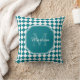 Um travesseiro decorativo quadrado de trendy teal e diamante geométrico branco verificou o padrão do azulejo. Personalize este design de na moda adicionando seu nome e monograma inicial.